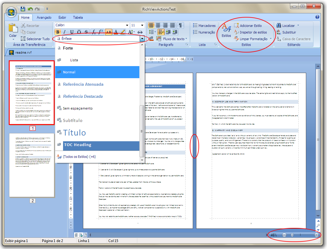 - Usar cabeçalhos e rodapés especiais na primeira página e nas páginas pares/ímpares (somente no TRichView; será implementado para ScaleRichView posteriormente);