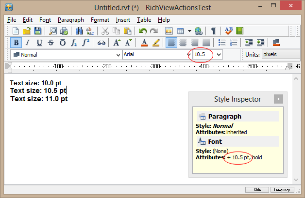 - valores nos diálogos RichViewActions se podem inserir em pixeis, pontos, cm, mm, ou polegas;