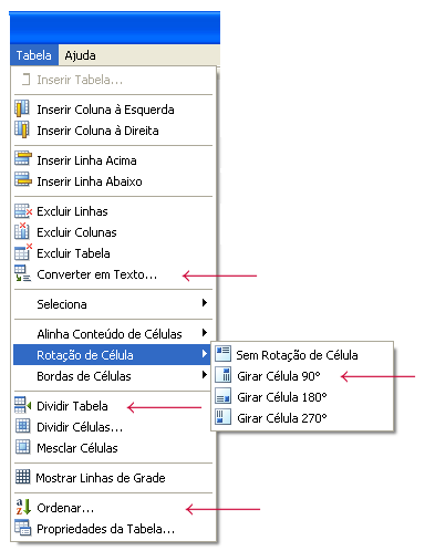 - as células de tabelas podem ser giradas 90°, 180° ou 270°;