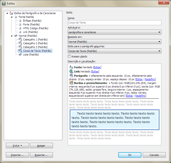 - estilos de texto e parágrafo permitem formatação separada do conteúdo e auxiliam na aplicação consistente da formatação ao documento;