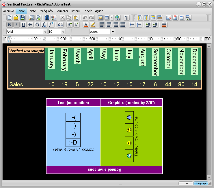 - novas ações em RichViewActions: para giro de células, classificação de tabelas, conversão de tabela em texto, divisão de tabelas