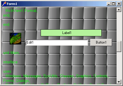 Descrição: painel que pode se ocultar e mostrar somente controles inseridos; desenvolvido para inserção de grupos de controles no RichView com fundo em bitmap. Chame o método HideItself para ocultar o painel, e ShowItself para torná-lo visível. O Demo carrega arquivos pas no RichView, então insere discretamente o painel, então carrega o arquivo pas novamente.